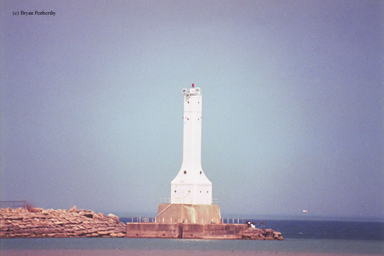 - Breakwall in the foreground, lighthouse in the background.