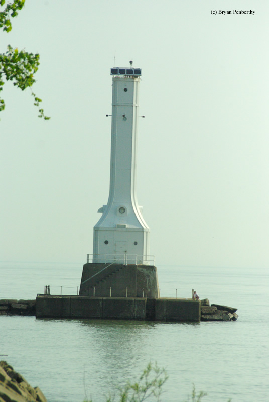 - Distance shot of lighthouse on pier.